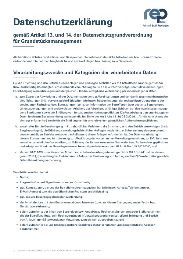 REP Datenschutzerklärung für Grundstücksmanagement